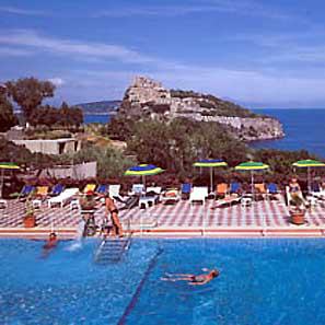 Der quirrlige Hauptort Ischia Porto empfängt seine Besucher in einem kreisrunden und vielleicht schönsten Naturhafen, der Welt. Ischia Porto verfügt über eine sehr malerische Hafenanlage der berühmten Rive Droite, welche der abendlichen Treffpunkt unweit der eleganten Via Roma, darstellt. Viele hervorragenden Restaurants, Lokale und Musikkneipen laden an den eleganten Hafenanlagen, ein. Exklusive Mode sowie kostengünstige Bekleidung und Artikel des täglichen Lebens können Sie auf einer der schönsten Einkaufsstrassen der Insel Ischia, der Via Roma, erwerben. Zahlreiche Parkanlage, Strände und attraktive Hotels ergänzen das Bild.